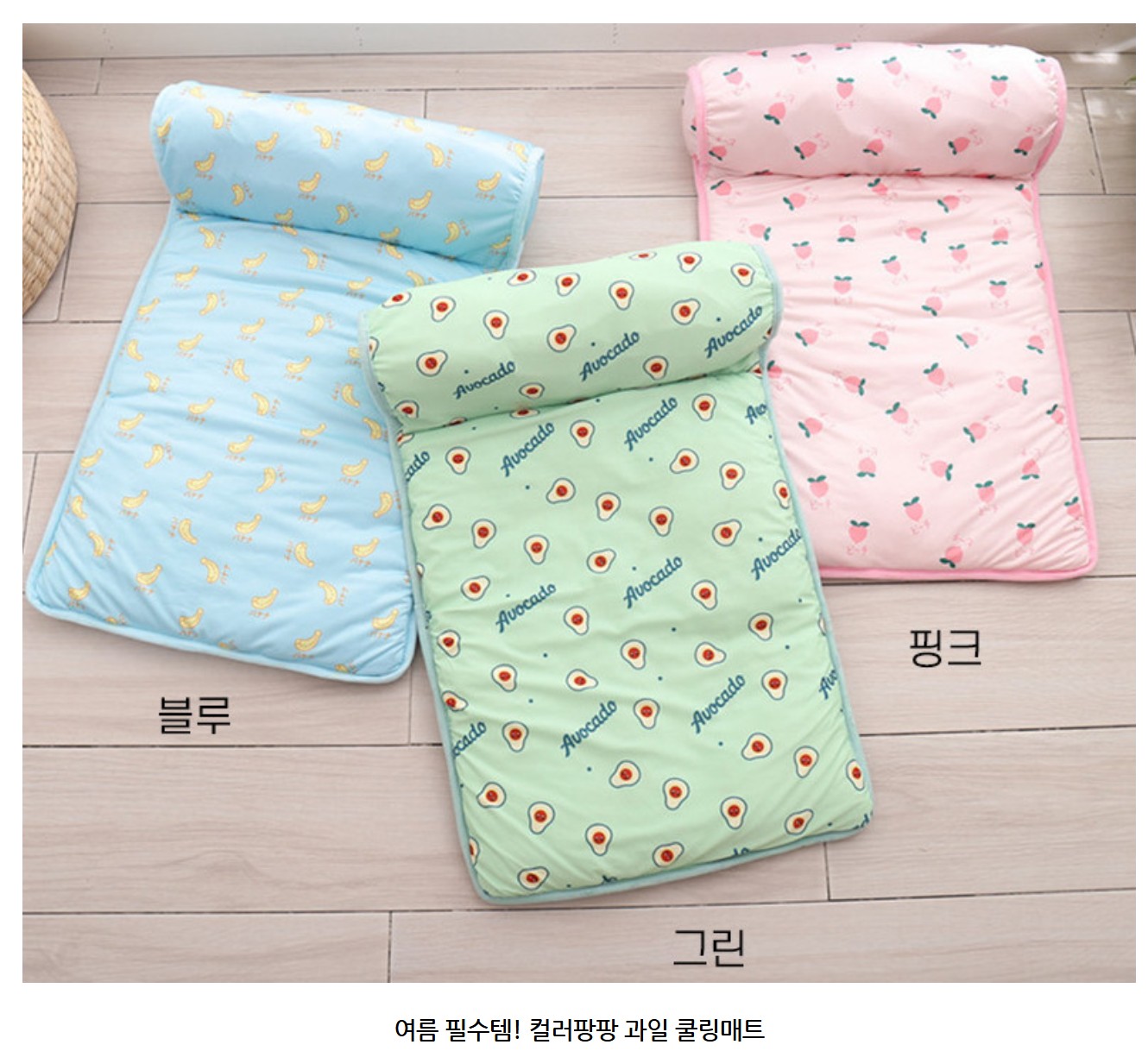 데이바쿠-강아지 고양이 여름쿨매트 귀여운 과일 디자인 펫 쿨메트 냉감원단+베개일체형 꿀조합