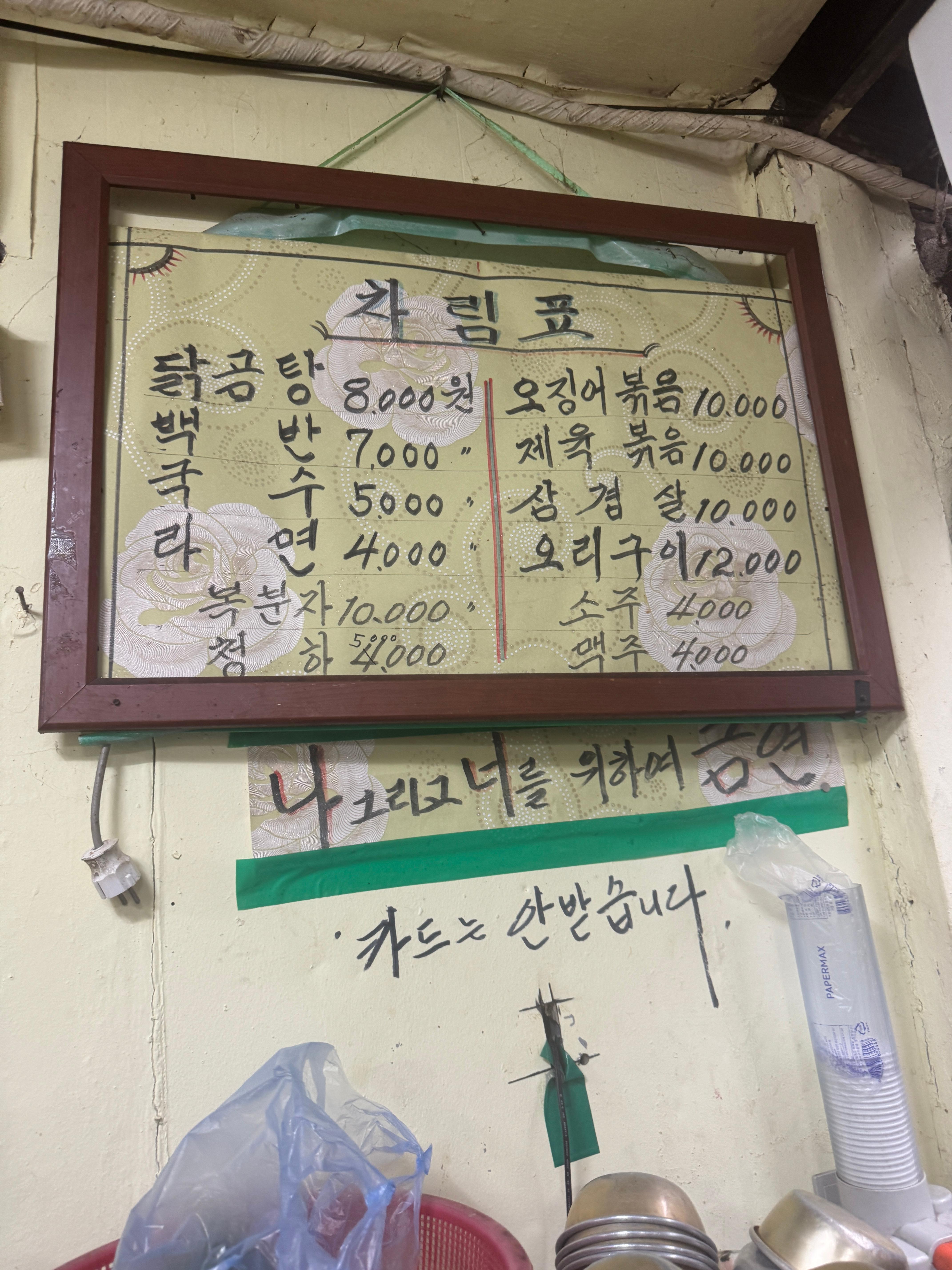 경동시장 한복판, 복잡한 시장 골목을 따라 걷다가 은근하게 숨은 간판 하나를 발견했습니다. 바로 ‘옥자식당’. 밖에서 보기엔 정말 아무렇지 않게 지나칠 수 있는 곳인데, 막상 안에 들어서니 시간이 멈춘 듯한 정겨운 공간이 펼쳐졌습니다.