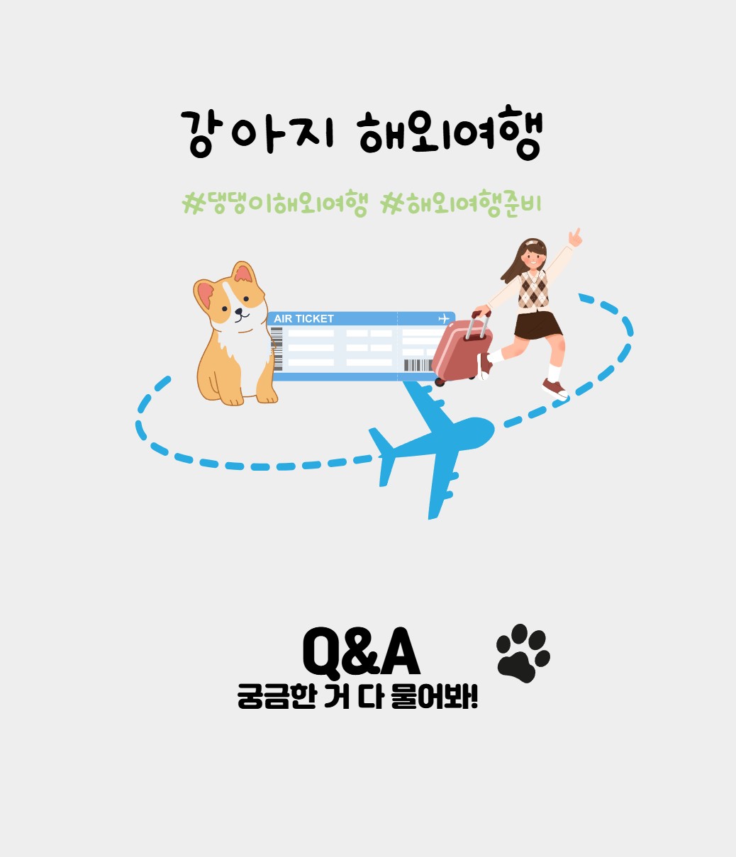 반려견과 함께 해외여행을 꿈꾸는 분들이 점점 늘어나고 있습니다. 강아지와 비행기를 타고, 새로운 문화를 경험하고, 특별한 추억을 남기고 싶은 마음은 누구나 같겠죠? 하지만 막상 준비를 시작하면 궁금한 점이 정말 많아집니다. 오늘은 강아지와 해외여행을 준비하는 분들을 위해 견주님들도 꼼꼼히 준비할 수 있도록, 강아지와의 해외여행에 대한 모든 궁금증 Q&A를 속 시원하게 풀어드립니다! 여행 전 해당 내용을 꼼꼼하게 읽어보신 후 도움이 되었으면 좋겠습니다. 그럼 시작해보겠습니다