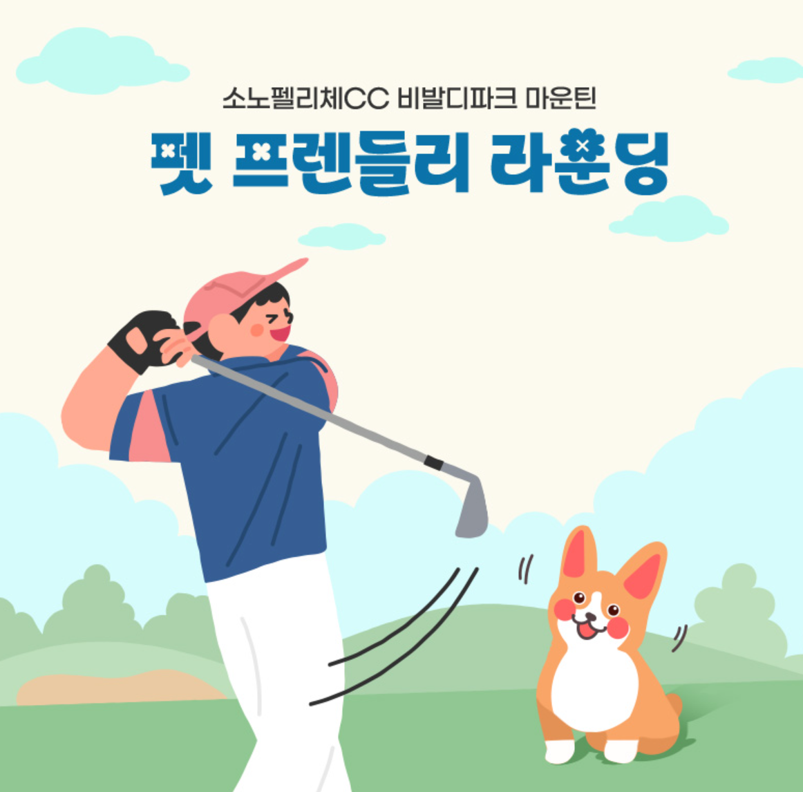 소노펠리체 CC 비발디파크 마운틴 코스에서 운영하는 '펫동반 라운딩'은 반려견과 함께 골프를 즐길 수 있도록 특별히 마련된 서비스입니다. 단순히 강아지를 동반하는 것을 넘어, 강아지들이 안전하고 편안하게 라운딩을 즐길 수 있도록 세심한 배려가 돋보이는 프로그램이죠.