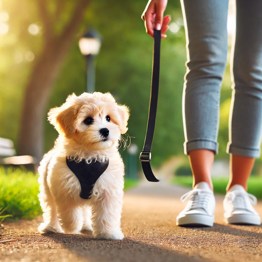 • 집 안에서 목줄 착용 훈련, 하네스 적응, 짧은 리드로 걷기 연습부터 시작하세요.